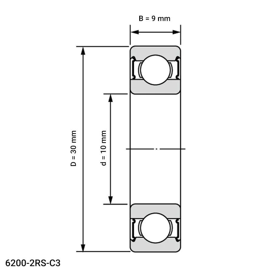 مشخصات و اطلاعات فنی "بلبرینگ 6200 2RS C3 شیار عمیق"